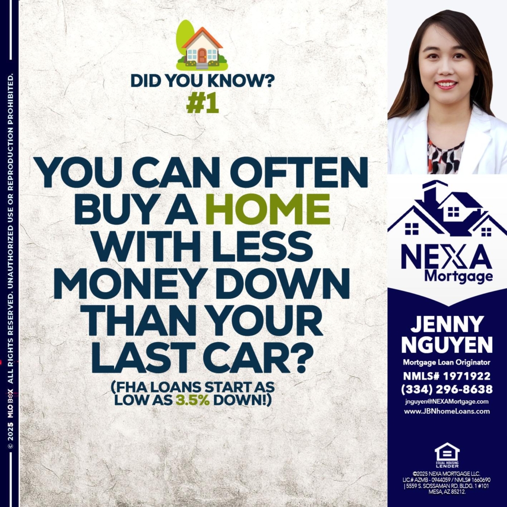 Hi, my name is Jenny Nguyen. I’m a Loan Officer with NEXA Mortgage LLC., offering personalized mortgage solutions, fast customized quotes, great rates and service with integrity.