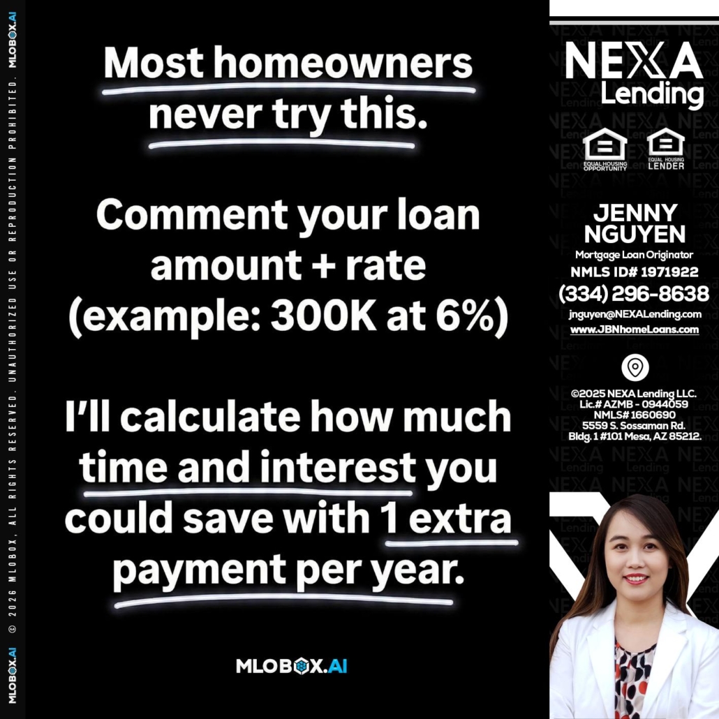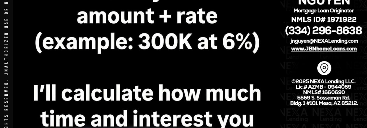 Hi, my name is Jenny Nguyen. I’m a Loan Officer with NEXA Lending LLC., offering personalized mortgage solutions, fast customized quotes, great rates and service with integrity.