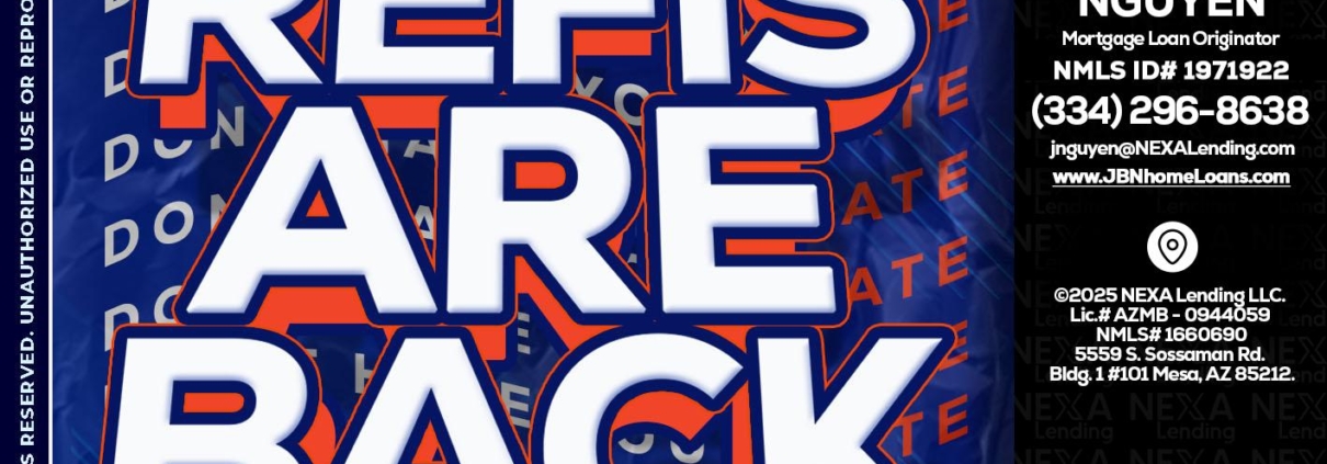 refis are back - Jenny Nguyen -Mortgage Loan OriginatorHi, my name is Jenny Nguyen. I’m a Loan Officer with NEXA Mortgage LLC., offering personalized mortgage solutions, fast customized quotes, great rates and service with integrity.
