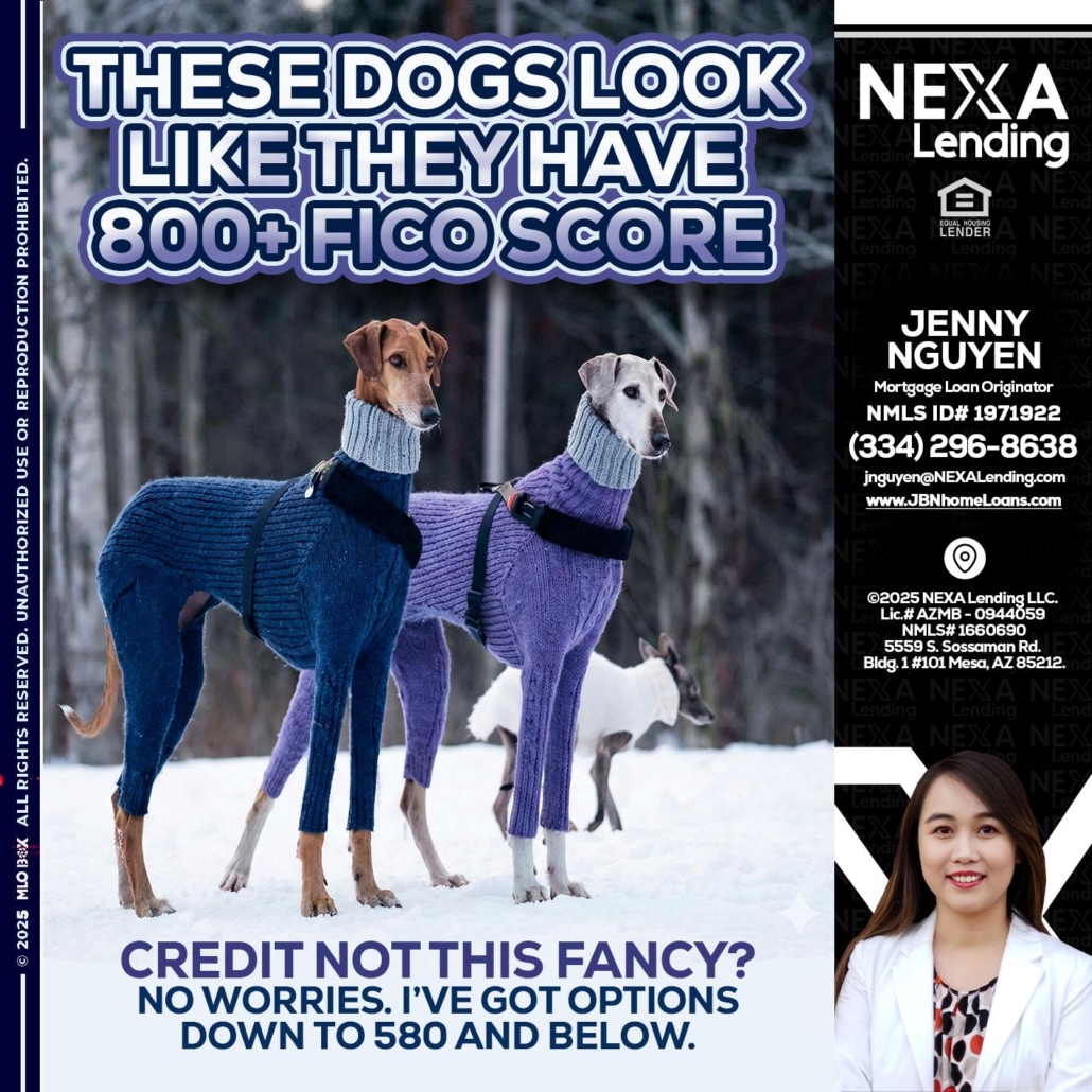 THESE DOGS LOOK - Jenny Nguyen -Mortgage Loan OriginatorHi, my name is Jenny Nguyen. I’m a Loan Officer with NEXA Lending LLC., offering personalized mortgage solutions, fast customized quotes, great rates and service with integrity.